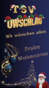 Der Vorstand wünscht allen eine Frohe Weihnachtszeit. Gleichzeitig möchten wir uns bei allen Bedanken, die auch in diesem Jahr den TSV Owschlag in diversen Funktionen so zahlreich unterstützt haben. Alleine hätten wir es nie geschafft. Ebenfalls ein großes Dankeschön geht an unseren Bauhof, der so vieles ermöglicht und die Hallen in Stand halten. Auch unseren Reinigungskräften gebührt ein großes Dankeschön, dass die Hallen stets sauber sind.